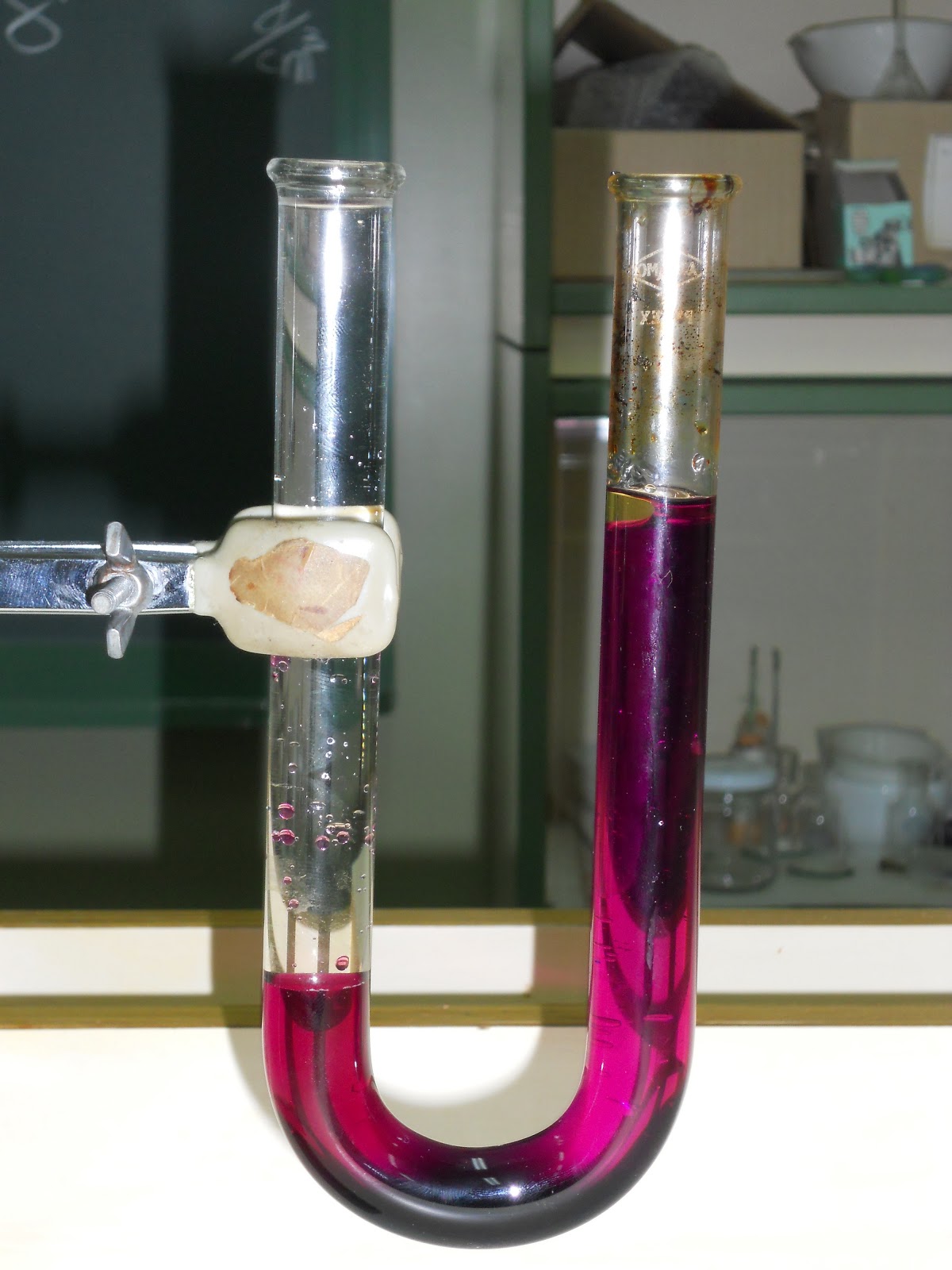 Se trata de un tubo transparente doblado en forma de "U" y abierto en ambos extremos.