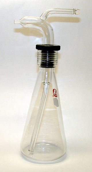 También son frascos cerrados con un tapón atravesado por dos tubos. Por uno de ellos se sopla, saliendo agua por el otro.